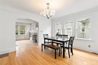 Don’t miss this opportunity to own a classic Green Lake home with standout updates and easy room to add value. A stately entry opens to a living room rich with original charm—hardwood floors, leaded-glass built-ins, and classic fireplace. Wide archways connect a sizable dining room, kitchen with eat-in nook, full bath and 2 sunlit bedrooms on the main level. Upstairs features a large bath, media room with custom built-ins, and two generous bedrooms. The nearly finished basement offers an entire separate living space including 2 legal bedrooms, a ¾ bath, wet bar and a large living/dining area with its own laundry—just a few details remain. Enjoy a fully fenced yard and alley-access garage, all just blocks from all Green Lake has to offer.