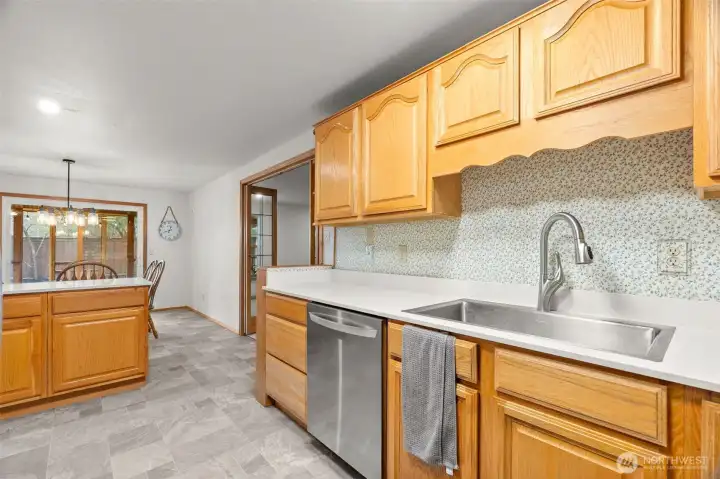 Welcome to your new home! This single story home offers the perfect blend of space, thoughtful updates, and is move-in ready! This desirable floor plan features a freshly painted interior, new flooring, quartz countertops, stainless steel appliances, triple pane windows in most of the rooms, plus a newer roof and gutters. The kitchen boasts abundant cabinetry and generous counter space and opens to the dining area with a sliding door to let in all the light from the backyard. Enjoy both a formal living room and a sizable living space with a cozy gas stove. The primary bedroom is privately situated at the back of the home, while three additional bedrooms offer plenty of extra room and space for activities and guests. The nicely sized, fully fenced yard includes a custom front patio, meandering paver walkways on the side, trimmed landscaping, new beauty bark, garden space, and a storage building with electricity. Enjoy a forced air/central AC system to cool down in the summer. Home is wired for a generator for added peace of mind. Close to I-5, JBLM, shopping, schools and more! Schedule a tour today!