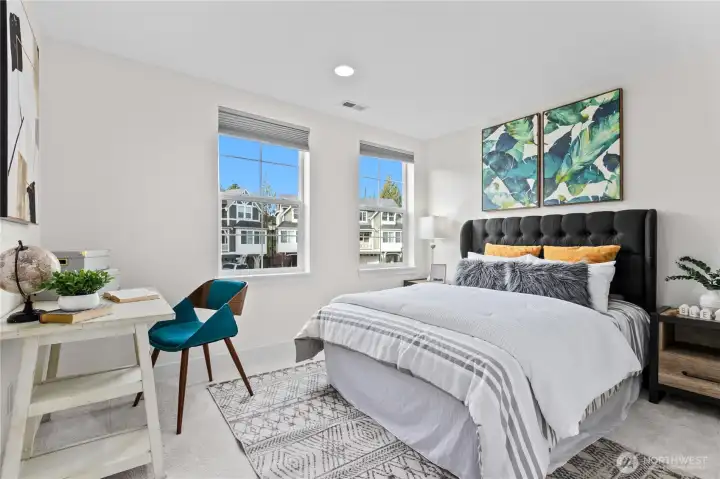 BETTER than NEW and beautifully located home in sought-after Kempin Meadows—this meticulously maintained home shines with $60K in upgrades. Luxurious 4-bedroom, 3.5-bath residence features soaring ceilings, a chef’s kitchen w/quartz counters, white wall-to-wall cabinetry, and a gas range, plus an open living room with gas fireplace and custom built-ins. Rich hardwood flooring throughout the main floor. The primary suite impresses with a spa-like five-piece bath, dual sinks, expansive walk-in closet, and a private office retreat/sitting nook. Top-level bonus room or guest retreat, complete with a full bath and custom media unit. Enjoy a large laundry room, abundant storage, tankless water heater, two-car garage, central A/C and a private patio off the dining room—perfect for relaxing or entertaining. Brand-new carpet, interior paint and SS appliances. No rental cap. Vibrant community with 2 playgrounds. Minutes to community parks, farms, trails, shopping, dining, and major employers, plus access to award-winning Lake Washington schools. Home pre-inspected by seller. Welcome home!!
