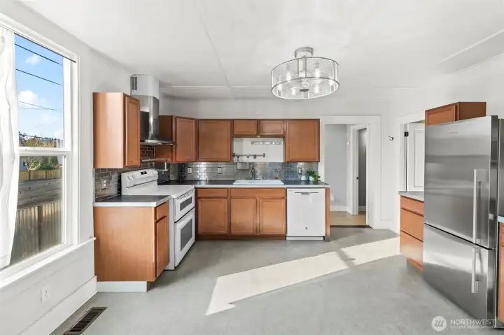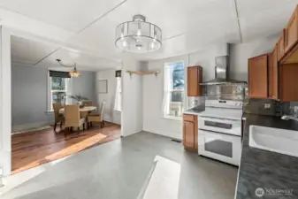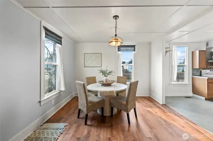 Welcome Home to this 1919 Classic West Bremerton Charmer featuring the perfect blend of original details paired with modern updates. Sitting on an above street corner lot, this 2 bedroom, 1.5 bath bungalow radiates the unique and rich artsy energy found in the city’s Maritime and Pacific Northwest roots. Step inside to an open yet cozy layout with LVP flooring, original millwork, and a warm gas fireplace. Find the adjacent dining space, leading to the kitchen with wood cabinetry and an abundance of space to host and entertain. Next you will find the powder room, primary bedroom with en suite, laundry space and back door entrance to the wrap around fully fenced garden area outside. Private parking space located right behind the home. Conveniently located just a 5 minute walk from Evergreen Rotary Park where you will find the Waterfront Bremerton Farmers Market open every Thursday, May through October. Easy access to the Puget Sound Naval Shipyard, Seattle Ferry, and the vibrant Downtown Scene. This home has been pre-inspected for your convenience and is ready for it's new owners to enjoy this Spring!