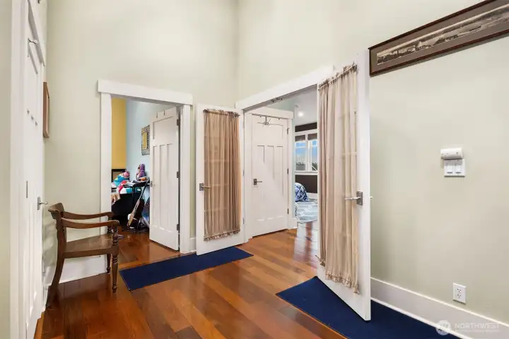 Thoroughly reimagined West Seattle Craftsman on quiet street west of California near Morgan Junction. Wonderful street appeal with 3 bedrooms and 3 baths as well as an additional bedroom in the partially finished lower level. Upgraded systems including radiant heat in the bathrooms. Upstairs primary suite includes a gas fireplace and a sitting room/office with two walk in closets, vaulted ceilings, ensuite bath and a bit of a view as well! A second bedroom and bath on the upper level as well as a bedroom and bath on the main floor. 4th bedroom on lower level and partially finished space offering family room/office possibilities. Fully fenced backyard with deck and grassy area. Huge 750 sq. ft. detached garage with EV charger and tons of storage.