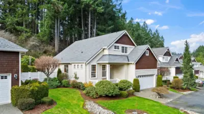 Welcome Home to this University Place 2 Story Charmer located in the gated community of Martha’s Vineyard. Backed by a lush green belt, this home allows for quiet and peaceful living. Step inside to a flowing open concept space, featuring hardwood flooring paired with traditional millwork. Perfect for hosting and entertaining, enjoy the kitchen, dining, and living spaces flooded with abundant natural light through the picture windows. Enjoy the added exterior rolling shutters for shade during the warm months. Also located on the main level is the sprawling primary suite with 5-piece bath and walk in closet. Open the cafe door to find the spacious laundry room and access to the 2 car garage. Upstairs, find two charming bedrooms, full bath, and a flex area perfect for a hobby or play space. Enjoy the calming private patio out back, and the sweet covered porch with green grass in the front! Under 10 minute drive to Whole Foods and Trader Joe’s, Chambers Bay and more! Monthly dues covering the home’s exterior maintenance including roof maintenance, trim maintenance, window washing, yard maintenance, gutter cleaning bi-annually, among other helpful services!