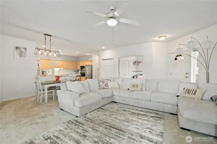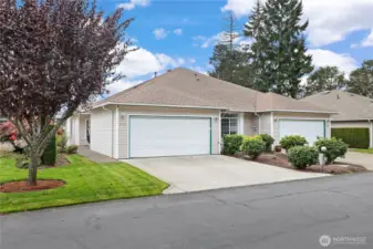Experience effortless living in the highly sought-after, gated community of Village on the Green. This meticulously maintained 3-bed, 2-bath rambler offers a spacious 1,502 sq ft open-concept layout. The heart of the home features a light-filled kitchen with a central island, pantry, and ample storage. Retreat to the primary suite, complete with a walk-in closet and a 5-piece en-suite featuring a soaking tub. Enjoy peaceful mornings on your private covered patio overlooking the tidy backyard. With a 2-car garage and a low-maintenance HOA that covers front and back lawn care, this home is the perfect "lock-and-leave" sanctuary. Tucked away on a quiet cul-de-sac yet minutes from local amenities—don’t miss this rare find!