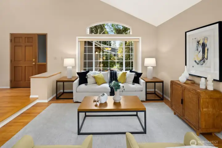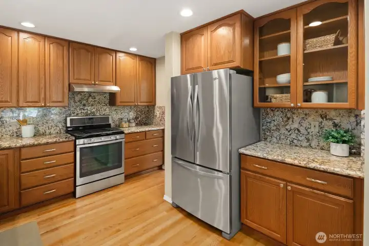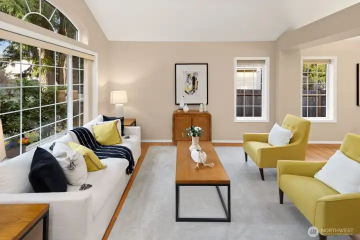 Located in desirable Ridgecrest and nestled on an expansive lot set back from the main road on a quiet street, this meticulously maintained and thoughtfully updated one-owner home offers exceptional privacy, generous living spaces, and abundant natural light throughout. The open living and dining areas are highlighted by soaring ceilings, solid hardwood floors, and expansive windows that frame the serene surroundings. The well-designed floor plan flows seamlessly into a casual great room, featuring a fireside family room and dining nook anchored by a well-appointed kitchen. Stainless-steel appliances, slab granite countertops, and extensive cabinetry make the kitchen both highly functional and welcoming for everyday living or entertaining. A main-floor office or bedroom provides excellent flexibility for remote work, guests, or multi-generational living, with main floor 3/4 bath. Upstairs, the vaulted primary suite serves as a private retreat with a spacious sitting area, walk-in closet, and luxurious five-piece bath. Three additional bedrooms and a full bath complete the upper level. Outdoors, has a nice patio, large & level, fully fenced backyard offers ample space for recreation, gardening, or quiet relaxation. Rare 3 car garage has lots of room for storage! Ideally located just a short stroll from Northcrest Park, coffee shops, a movie theater, local shopping, and top-rated schools, with convenient access to the light rail. Home has been pre-inspected!