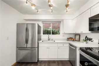 Amazing New Price – Only $407/Sq Ft! Ideally located in a central, walkable community close to shopping and dining, this updated, move-in-ready two-level townhome-style condo offers exceptional convenience with easy access to Microsoft, SR-520, Downtown Bellevue, bus lines, and nearby light rail stations. Freshly painted throughout, the open-concept layout features a newer modern kitchen with updated cabinetry, quartz countertops, stainless steel appliances, and a generous dining area. The inviting living room is anchored by a cozy fireplace and opens to a private patio and fully fenced yard. Two spacious bedrooms and a full bathroom upstairs, where you can enjoy peaceful views of the community pool and beautifully landscaped grounds. Additional highlights include in-unit laundry, two storage rooms, two assigned parking spaces, and a well-maintained community offering a clubhouse and outdoor swimming pool. HOA covers water, sewer, garbage, and common area maintenance. NO special assessment. Located in a truly walkable community, a place you don't want to miss. The home has been pre-inspected for added peace of mind.