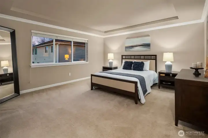 Embrace a meticulously cared-for home where bright, open spaces unfold around a grand staircase greeting you at the entrance. A sunlit living and dining room flow into a modern kitchen, gleaming with stainless steel appliances, connected to a cozy family room. The first floor welcomes a convenient utility room, an office, and a half bath. Upstairs, unwind in the luxurious primary suite with a radiant 5-piece ensuite, plus three additional bedrooms and a spacious family room. A generous, fully fenced backyard with a patio, a 3-car garage, and storage completes this amazing home. This home is in the sought after North-Shore School District—Welcome to your new Oasis.
