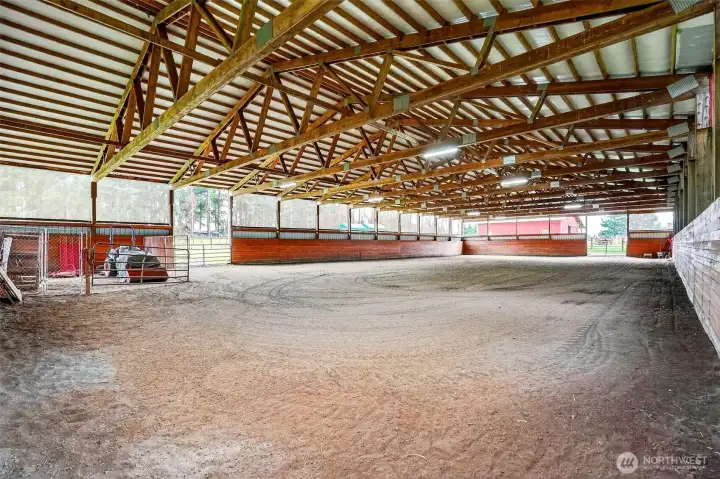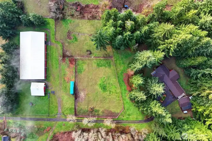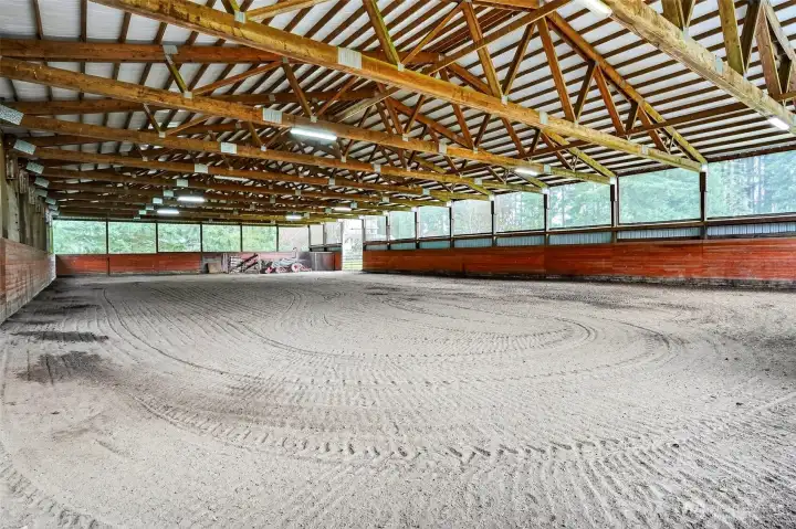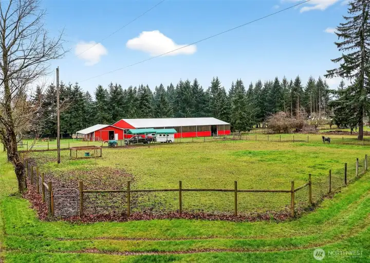 Convenient to La Center, Ridgefield and Battle Ground, and roughly 40 minutes to PDX, this property blends serene country living with practical access. Discover your equestrian oasis on this move-in ready 9-acre property tucked into the trees in Woodland, in the coveted La Center School District. The lovingly maintained ~3,000sqft home offers flexible, multi-generational living with two living rooms and two potential primary suites on separate wings—ideal for work-from-home, extended family, or multi-use living. Large windows and expansive decks fill the home with natural light and provide sweeping views of pastures where horses and livestock graze. The kitchen anchors the floorplan and flows to comfortable gathering spaces, while covered carport plus an oversized garage offer abundant workspace and storage. Equine facilities are outstanding: a charming four-stall barn with bedding/tool storage, open tack room, seating area and large hay loft (one oversized stall; one configured for goats but easily converted back), and three stalls with Dutch doors opening to a shared fenced paddock. The centerpiece is a fully lit, screened, covered 72x144 arena built to stay dry even in wet PNW weather —perfect for any discipline. Ample trailer parking, multiple building sites, and room to add additional pastures, a round pen, outdoor arena, expanded barn or shop provide endless possibilities. Bring your horses, hounds, and hobbies—this is country life, ready to enjoy.