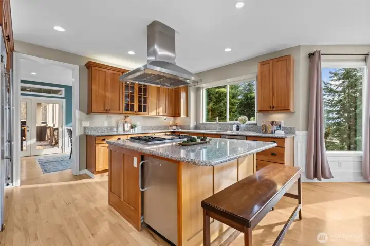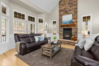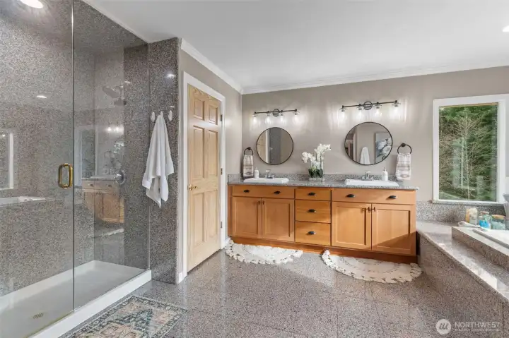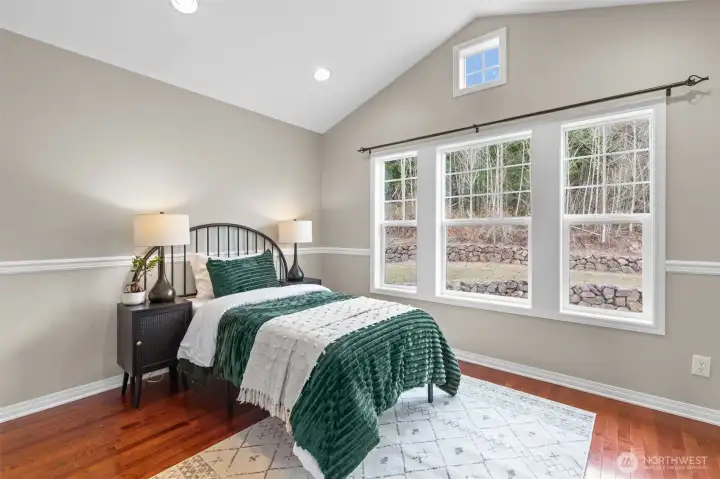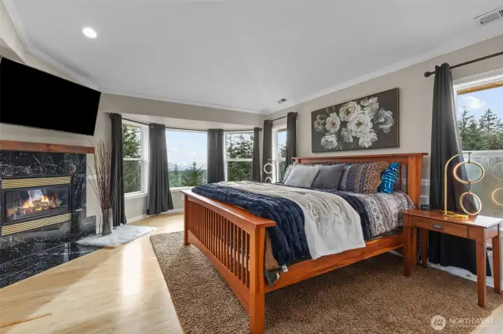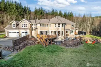 Set on nearly 27 acres with sweeping Mt. Rainier views and expansive timberland, this property offers exceptional privacy, a true Northwest setting, and convenient access to Redmond and the Eastside. The open-concept design features a chef's kitchen, abundant natural light, and seamless indoor-outdoor living with French doors opening to an oversized deck. The primary suite enjoys mountain views, a fireplace, spa-style five-piece bath, and dual walk-in closets. Three additional vaulted-ceiling bedrooms, a rec room, and bonus space are located upstairs. The main level includes a two-story entry, stone fireplaces, private office, full bath, and garage with an electric vehicle charger, plus a whole-house generator for peace of mind. Recent updates include refreshed landscaping, interior paint, and updated lighting and fixtures. Wraparound decking, fenced yard, backyard fire pit, and a private trail leading directly to King Lake Cellars complete this serene retreat