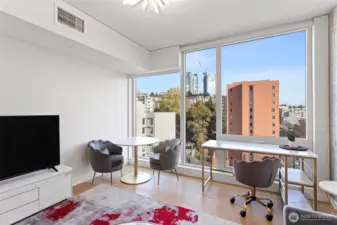 Welcome to KODA, a striking modern high-rise in Seattle’s vibrant International District where contemporary design meets cultural heritage. This open one-bedroom, one-bathroom home features expansive floor-to-ceiling windows, a smart and spacious layout, Blomberg appliances, a smart thermostat, engineered hardwood floors, and custom Euro-style cabinetry. Parking is available upon request. Residents enjoy an exceptional suite of amenities including a wellness center, rooftop terrace with sweeping views, coworking lounge, guest suites, and Club KODA—complete with a theater, chef’s kitchen, and dining space. Steps from the light rail, Uwajimaya, stadiums, and downtown, KODA offers a seamless blend of urban energy and authentic community living