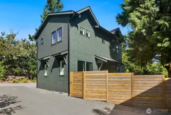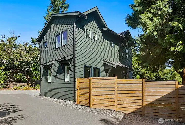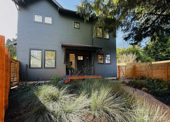 Move-in Ready! Better than New! This Contemporary Farmhouse-style 2-story home, built in 2022, lives like a private retreat. Professionally landscaped, with its own fully fenced yard, outfitted with smart-controlled lighting and irrigation, the outdoor spaces create an oasis that feels both serene and beautifully considered. Inside, light-filled rooms are elevated by solid white oak floors, high ceilings, an elegant fireplace, and a culinary kitchen with stainless steel appliances, including an INDUCTION Range. Open living and dining spaces feel both inviting and refined, with a convenient 1/2 bath on the main level. Upstairs are 2 bedrooms, each with its own full bathroom, including one with a walk-in closet, plus an additional storage closet and stacked washer/dryer in a proper laundry room for everyday ease. Thoughtful post-builder upgrades make this home truly better than new, including window treatments, many top-down/bottom-up, Lutron smart tech, and custom storage. Enjoy efficient heating and A/C with ductless mini-splits, plus 2 off-street parking spaces (accessed from the alley), one EV prewired. Tucked into one of West Seattle’s friendliest neighborhoods near the Fauntleroy Ferry, Lincoln Park, Endolyne, and beloved local shops and eateries. Convenient to Seatac Airport, yet blissfully quiet. If you’ve seen this home before, return to experience the NEW FENCING INSTALLED that further enhances the privacy, beauty, and distinct sense of arrival.
