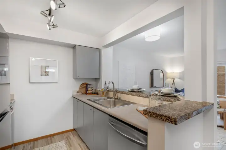 Relax in your urban oasis, where you have everything you need! This modern condo building offers stunning views of the Seattle city skyline and Mount Rainier from the rooftop deck. This bright unit features new paint, laundry in-unit, stainless appliances and new lighting. Stay active in the on-site fitness center or stroll to the nearby Cal Anderson park with your furry friend. Take meetings or work from home in the flex conference space and remain energized for your day at the coffee shop. Enjoy both high security and convenience with a deeded parking space, in-lobby mail package drops and a Link Light Rail station just blocks away. With a walk score of 99, you'll love the proximity to great restaurants and avoiding spending your precious time in traffic. This well-run HOA has low dues and no rental cap! The building common areas are professionally maintenance cleaned weekly. Don't miss the makes-life-easier trash chute at the end of the unit's hall. The manager and board director here are responsive. Does it get better than this in-city? Welcome home!