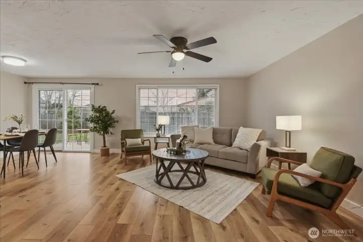 Be the next lucky homeowner to call this stylishly upgraded 3-bed 2-bath ranch your new home! Nestled in east Vancouver's Scarborough Estates, this bright one-level gem with attached 2-car garage is absolutely dialed in, both inside & out! The kitchen features generous butcher block and quartz countertops with cupboard & cabinet space galore. The open living room leads to a dining nook with a view and sliding door to the landscaped backyard and patio. An electric fireplace in the living room ensures that relaxing and cozy vibes are always ready for full effect. Upgrades include LVP through the kitchen, living & dining areas. Both bathrooms have been revamped. The primary bedroom is spacious, with an ensuite bathroom, vaulted ceilings, and a walk-in closet. French doors in the primary offer a calming view and access to the patio & fire pit. The backyard is fenced, and includes a shed and raised bed. Clean, clever landscaping out back create a true extended living space. Location, tasteful upgrades, and main-level living make this darling ranch an incredible opportunity to be at home!
