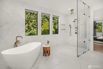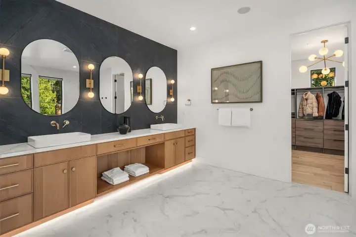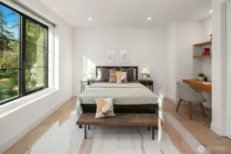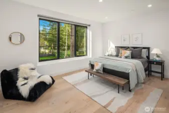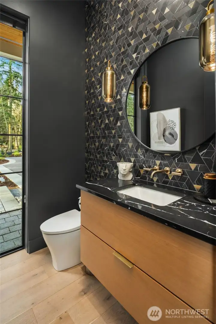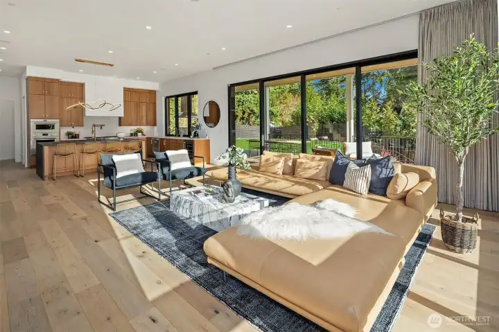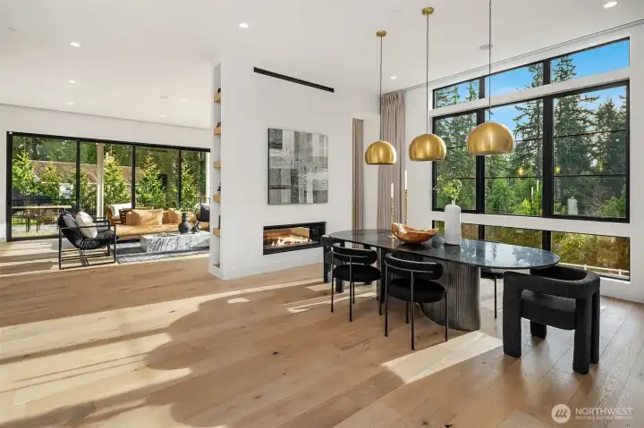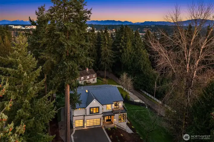 This custom Bridle Trails residence offers a seamless blend of comfort and elevated living, situated on an acre-sized parcel designed to maximize light and functionality. Modern style, sophisticated interiors, expansive windows and vaulted ceilings create an inviting, light-filled atmosphere throughout, with the added opportunity to personalize nearly 1,600 sf of unfinished bonus space. The main floor is ideal for everyday living and entertaining, centered around a chef’s kitchen with custom cabinetry, Dekton countertops, an oversized island and a professional grade appliance suite including Wolf and Sub-Zero. The kitchen flows into the dining and living rooms, where sliding LaCantina doors open to a covered outdoor terrace and backyard for seamless indoor-outdoor living. A light-filled office offers an inspiring work-from-home space, while a main floor guest suite adds flexibility for visitors or multigenerational living. Upstairs, the primary suite is a serene retreat with a spa-inspired bath, slab stone surfaces, designer tile and premium plumbing fixtures. Three additional bedroom suites feature ensuite baths and are complemented by an inviting bonus room opening to an added covered deck. The lower level offers future potential for additional living or entertaining spaces. Ideally located near Bridle Trails Corner Park, close to everyday amenities and within the highly regarded Bellevue School District, this home offers a rare opportunity to enjoy refined modern living.