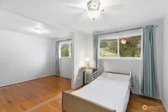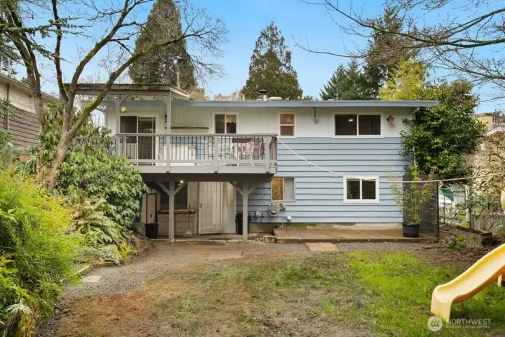 Spacious house on large lot in a quiet setting. So much flexibility here, lives well as one large house or use each level as a separate home since lower level has a full kitchen as well as front and back doors. Updated main kitchen overlooks deck and backyard with play structure and potential for a big garden. Long and level driveway allows for RV parking or access to existing, or maybe even future, outbuildings. Mature landscaping enhances the curb appeal for this classic home tucked into a sweet spot on a non-through street, yet easy access to stores, restaurants and just a quick trip to downtown Seattle.