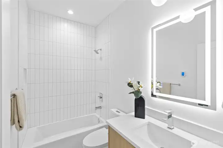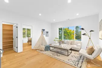 The home everyone's been waiting for is finally complete! Discover refined luxury in this brand-new transitional modern estate by acclaimed local builder Specialty Design+Build. This meticulously crafted 5-bedroom plus office, 4.5-bath residence spans 4,170 SF on a generous 13,082 SF flat lot, featuring an exceptionally rare 935 SF four-car garage. Step through the entry into soaring ceilings and thoughtfully designed living spaces including a dedicated main-floor office and guest suite with private ensuite. The chef's kitchen is the heart of the home, showcasing a dramatic 13-foot island, professional-grade 48" Wolf gas range, and 60" built-in refrigerator—a true entertainer's dream. Retire to your expansive primary suite featuring a spa-inspired ensuite bath and an extraordinary custom walk-in closet (bedroom-sized!) with convenient direct laundry access. The dedicated wing upstairs offers two bedrooms sharing a versatile play room and ensuite bath. Seamlessly extend your entertaining to the spacious covered porch and generous backyard with multiple activity zones. Premium finishes throughout include wide plank engineering hardwood throughout the home (no carpet!), level 5 smooth drywall, heated bathroom floors, designer tile and custom millwork. Unbeatable Central Bellevue location with effortless access to parks and recreation, major freeways, premier shopping, leading tech campuses, and everything the Eastside has to offer.