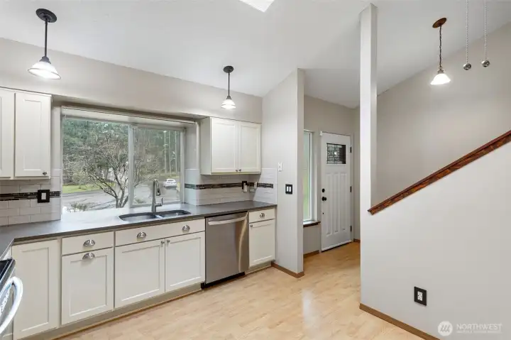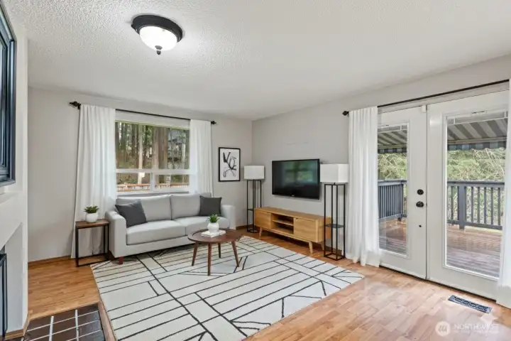 This charming lake-view home on Long Lake offers a unique floor plan and a lifestyle centered on comfort and relaxation. Tucked at the end of a spacious cul-de-sac with no neighbors directly behind, the property provides exceptional privacy and a peaceful setting. The home offers approximately 1,500 square feet of living space (per assessor) and features a beautifully updated kitchen, a versatile upstairs living room with access to a deck showcasing a lake view, and a downstairs bonus room ideal for a media space, home office, or guest area. The primary bedroom includes its own private deck, creating a quiet retreat to unwind. With access to a community lakefront area and ample space for entertaining, this home blends scenic beauty, functionality, and inviting charm.