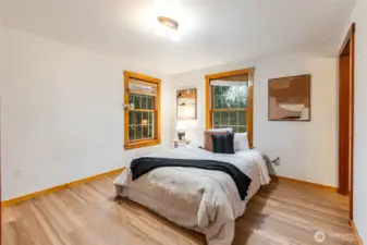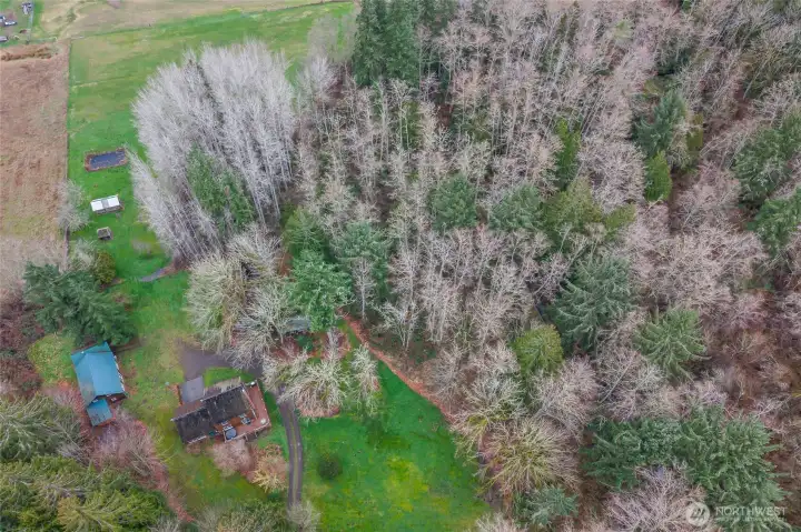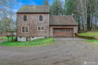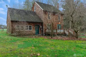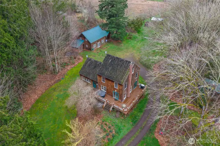 Unique Chimacum retreat on a spacious 5 acres of flat, usable land, featuring a 3-bedroom, 2.5-bath home filled with natural light from expansive windows throughout. The living room offers a cozy wood-burning fireplace and opens to a wrap-around deck, perfect for enjoying the peaceful setting. Upstairs you will find a extra rooms/space perfect for extra living space or storage. The property includes a 2-car attached garage plus a large detached shop with wood stove and greenhouse, ideal for hobbies, storage, or projects. Mature fruit trees are scattered throughout the grounds, offering beauty and function. Conveniently located less than 5 minutes to Chimacum and just 20 minutes to Port Townsend, this property combines privacy, usability, and easy access to town amenities.