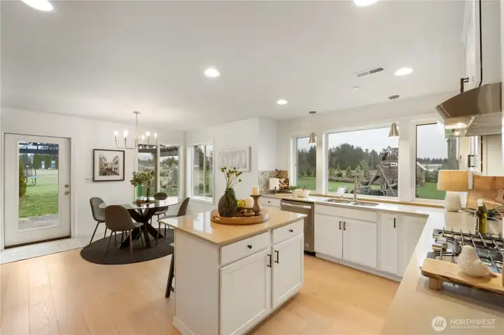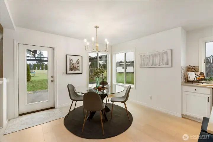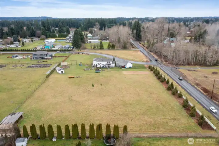 Discover this stunning 4.5+acre haven in Buckley! Enjoy the views of planes taking off on the newly built deck with views of Mount Rainier and the foothills. The grand entry brings you home with 17' ceilings w/double chandeliers. The kitchen, perfect for the entertainer, w/5 burner gas range, double ovens, Kitchen aid fridge, and wide-open views from your breathtaking kitchen sink escape. Gas fireplace in Living and Family room will warm up your winter evenings. Upstairs, Primary suite w/5-peice luxury bath + walk in closet, 2 additional beds, full bath and a Large Bonus Room with access to 2nd story deck overlooking your estate. Outside offers Custom greenhouse with indoor/outdoor beds, young orchard, and Hay field yielding ~100 bales yearly. The detached 542sqft shop w/attached carport, 4-post car lift, 125amp panel, 240v outlet + 30amp RV hookup is perfect for any hobbyist. Additional 12x32 studio with 100amp panel, heat, lighting, LVP flooring and metal roof ready for your imagination. Year-round permanent farmhouse style exterior lighting brings the modern charm to this one-of-a-kind opportunity. White River School districts w/convenient Bus stop. Bring your livestock, chickens, horses, etc.