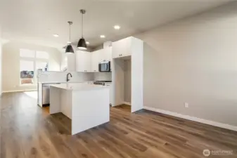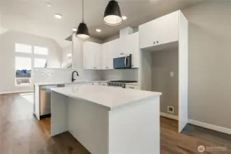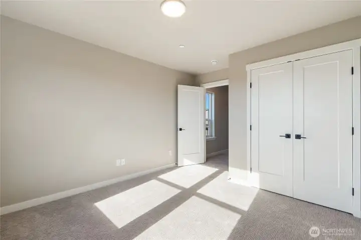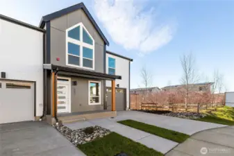 Welcome to Northview 2 in Cordata, Bellingham's premier solar home community! This stunning 2-story modern farmhouse design features an open and spacious floorplan, a custom kitchen with sleek quartz countertops, and a primary suite with an ensuite boasting a double sink and walk-in closet. Designed with sustainability in mind, enjoy efficient mini-split heat pumps with A/C, a partially fenced backyard, and EV charger prewiring. Light-filled interiors enhance the modern design. This beautiful 3-bedroom home backs up to a greenbelt for added privacy. Your dream home awaits—secure yours today!
