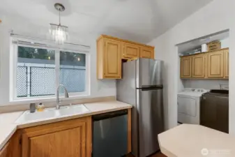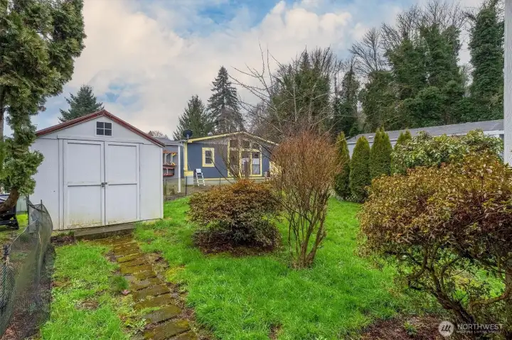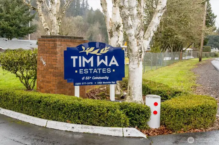 Nice 3 bedroom 2 full bath home in TimWa 55+ manufactured home park. Primary has an attached full bathroom with a large closet. Kitchen comes with stove and dishwasher. Washer/Dryer included. 2 additional bedrooms and another full size bathroom with a vaulted spacious living room and dining area round out this clean and move in ready home. Newer laminate wood floors and neutral paint colors will make for a calm and peaceful home. The yard has a tool shed and a covered carport.