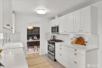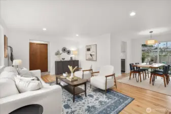 Move-in ready dream home in the heart of Edmonds! This updated tri-level gem is nestled in a serene neighborhood, offering the perfect blend of comfort and style. The meticulous care and thoughtful updates throughout the years will make you feel right at home. On the main floor, you’ll find a sunlit living room with a cozy wood-burning fireplace. The dining room features an original built-in cabinet, while the updated chef's kitchen has sleek quartz countertops, modern cabinetry, and a pantry with pull-out drawers for ultimate convenience. Upstairs has highly coveted 3 bedroom layout, including an oversized primary suite that feels like a private retreat. This spacious room (staged with King bed) boasts a large walk-in closet, a spa-like en suite bathroom with a zero-entry shower & an extra linen closet for added storage. 2 additional bedrooms and a fully updated bath, round out this level. The lower level offers incredible versatility with a large bonus room, plus an additional space that can be transformed into a home office or play area as well as an extra-large 4th bedroom. The room staged as a workout room could serve as a non-conforming 5th bedroom if needed. The fully fenced backyard is designed for entertaining, relaxation and play. The attached garage, driveway parking and an additional parking space offer plenty of room for vehicles and guests. Recent updates include fresh interior paint, brand new carpet, refinished hardwoods a new hot water heater. Welcome home!