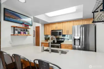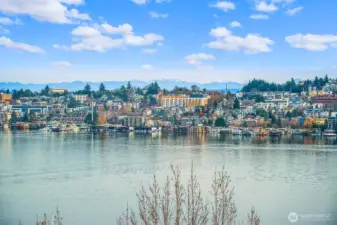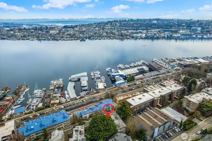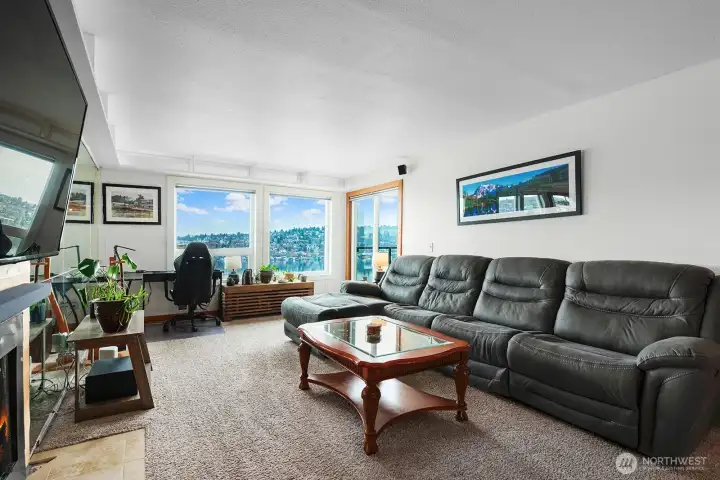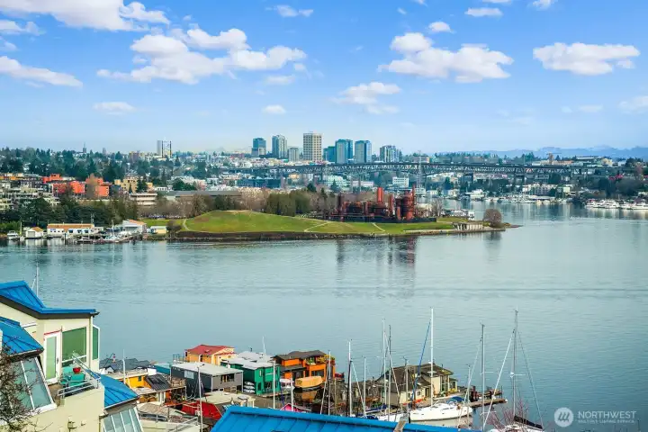 Enjoy sweeping outlooks of Westlake, Lake Union, and Gas Works Park from this thoughtfully updated one-bedroom residence. The open-concept layout is both inviting and functional, featuring a fireplace, defined dining area, and access to a private balcony from both the living room and primary bedroom—ideal for taking in the surrounding scenery. The refreshed kitchen is appointed with quartz countertops, shaker-style cabinetry, and included appliances, allowing you to enjoy lake views while preparing meals. Recent upgrades include new windows, enhancing comfort and efficiency. The well-maintained boutique building offers just 12 units and features updated exterior siding and paint, no rental cap, and no pet restrictions. Additional conveniences include secured parking and a dedicated indoor storage room. Ideally located near Fremont and downtown Seattle, this home offers a rare combination of views, flexibility, and urban accessibility.