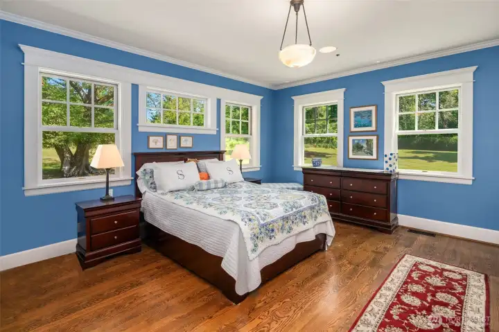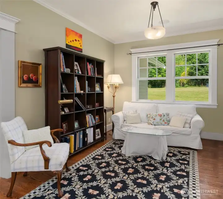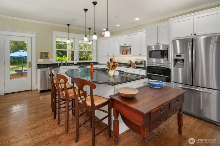 The long, sylvan driveway opens onto five acres of quiet, private, sunlit pasture and gardens which envelop the exquisite 2,258 sq. ft. one-level home and studio. Minutes from town and schools, the attention to quality delights—custom fixtures, handmade tiles and pulls, Rejuvenation light fixtures, exquisite hardware and high ceilings, wide halls and a covered porch that offers additional living and entertaining space. An oversize two-car garage and shop provide 650 additional sq. ft. In the Craftsman style, there is built-in furniture in most rooms. A matching outbuilding, riding lawn mower and Generac are included in the sale. Come home to paradise found!