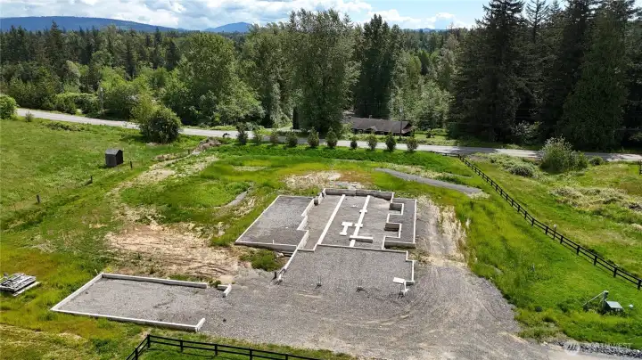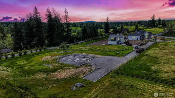 Turn-key lot - ready to be finished to completion! All permits have been paid, foundation, footings, initial grading, septic and drain tile all complete. This property resides in an exclusive, gated community. Enjoy the tranquility of a private, paved neighborhood set in a peaceful, park-like setting, all in a highly desirable mid-county location. A rare opportunity to create something truly special and pick your desired finishes. Enjoy the additional value of fully permitted plans for 3700 sq ft house and 800 sq ft detached shop ready to build. Ready for framing, start building your home immediately. Plans included for shop expansion by 800 sq ft with Flex Space above
