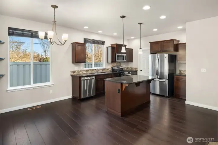 Welcome to this beautifully maintained, move in ready 4 bed, 2.5 bath home offering 2,366 sq ft on a spacious corner lot! The main level features a private office and an open floor plan, with the kitchen showcasing stainless steel appliances including a gas range, granite countertops, an island, and a pantry that flows seamlessly into the living and dining areas. Upstairs you will find a generous primary suite with a 5-piece bath and walk-in closet, along with 3 additional bedrooms and upstairs laundry for added convenience. Outside, the fully fenced yard includes a large deck with a built in fire pit, perfect for entertaining or everyday enjoyment. The home also features an attached 2-car garage and is conveniently located near I-5 and JBLM.