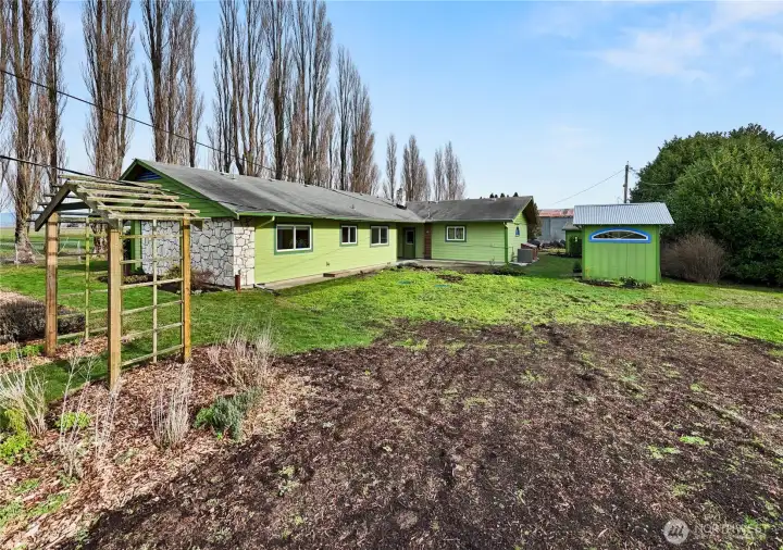 Welcome to country living right outside La Conner! Relax in this 1964 one-level mid-century home with easy access, open spaces, Tons of storage, original cabinetry and bamboo floors. Newer double-pane windows throughout bring in light through the day. Enjoy warm cozy evenings in front of the wood fireplace. Have afternoon lunches on the back patio overlooking the yard and gardens. The kitchen, with plenty of open space and counters, has a beautiful Marmoleum-style linoleum tile floor. Views from the kitchen overlook neighboring farm fields that change each year – from tulips and daffodils to vegetables and more. The home features natural gas, with city water and services through the Town of La Conner. A new septic system was installed in September 2025. The bonus room, currently set up as a photography studio, makes a great art lab, play space or convert it to an additional living area. Spend your days on half an acre of level and sunny gardening space – and there are plenty of perennials popping up! The one-car garage also makes a great shop space, and there’s room for RV and off-street parking.