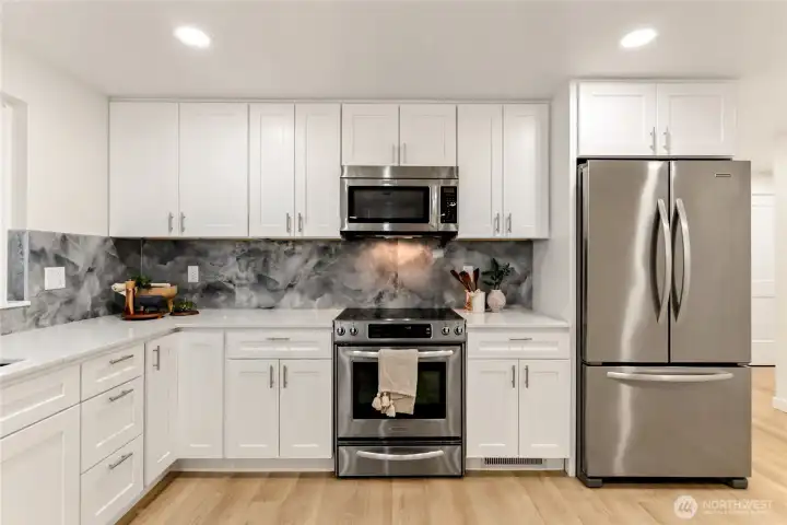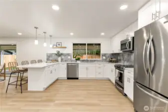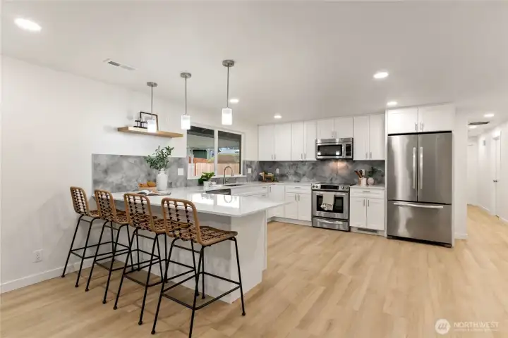 Step into refined luxury in this exquisitely remodeled 4-bedroom, 2-bath residence where no detail has been overlooked. Designed for both elegance and comfort, this exceptional home offers RV and boat parking, a spacious 2-car garage, and a fully fenced estate-style yard with gated access, ideal for privacy and secure storage. Mature fruit trees and a storage shed enhance the serene outdoor setting. Inside, you’re welcomed by a light-filled open-concept layout curated for modern living and effortless entertaining. The living room is anchored by a dramatic electric fireplace and flows seamlessly into the designer kitchen and dining space, opening to a covered deck for year-round enjoyment. The gourmet kitchen showcases quartz countertops, custom cabinetry, stainless steel appliances, and expansive prep space—perfect for hosting and everyday indulgence. The primary suite is a true private retreat, featuring an oversized walk-in closet, a spa-inspired bathroom with custom tile shower, floating vanity, illuminated mirrors, and its own elegant electric fireplace. Three additional bedrooms offer flexibility for guests, office, or creative spaces, all finished with the same attention to detail. Perfectly located near schools, parks, and colleges, this turn-key luxury home offers timeless style, functionality, and comfort. A rare opportunity and an absolute must-see.