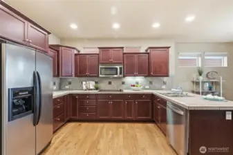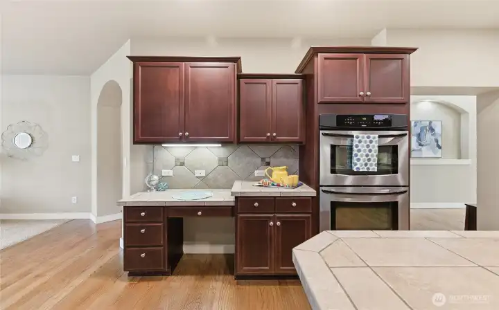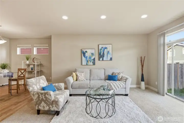 Welcome to this sought-after Edgewater home featuring a spacious, versatile layout with a rare main-level primary suite offering French doors, a 5-piece bath, and a large walk-in closet—ideal for multi-generational living or everyday convenience. Enjoy beautiful oak hardwood floors and architectural details including 9-ft ceilings, alcoves, a cathedral-ceiling entry, and flexible space for formal dining. The kitchen features stainless steel appliances, double ovens, abundant counter space, built-in desk, under-cabinet lighting, breakfast bar, and a newer 2022 dishwasher. The inviting family room includes a cozy gas fireplace. Upstairs offers three generously sized bedrooms and a large vaulted bonus room to fit a variety of needs. Additional features include central A/C, fully fenced yard, oversized 2-car garage, washer and dryer (2021), and HOA-maintained front yard. Enjoy Edgewater’s trails to the Sound, private beach access, parks, playgrounds, golf course, pickleball and tennis courts. Located in NE Lacey minutes from Hogum Bay shopping with easy access to I-5 and JBLM.