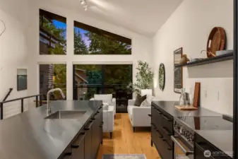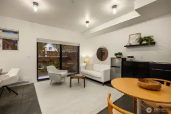 Fall in love with the modern, urban-loft vibe of this stylish home w/ easy access to Winslow dining, shopping, galleries, local parks, top-rated schools & the ferry. Enjoy a sleek new Vipp modular kitchen w/ Bertazzoni oven & SS counters, dramatic open stairway, and a ground-floor studio w/ ¾ bath & private patio—ideal as a 3rd BR or coveted STR for income potential. Flexible layout offers a top-floor great room w/ chic pine floors + huge covered deck for year-round living, along with 2 ensuite bedrooms. Quality ICF construction = superb sound/temp insulation & low-maint living. Attached garage + lightning-fast fiber internet complete this cool, connected home. Separate living spaces can be used for short-term & long-term rentals.
