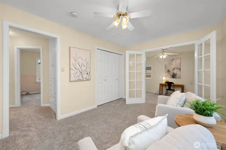This single-level bungalow in the desirable Cornwall Park neighborhood is ready for you to make it your own. With a brand-new roof, a recently installed furnace, and fresh paint and carpeting throughout, the home is primed for comfortable living. The open-concept layout is filled with natural light, creating a warm and welcoming atmosphere, while the private primary suite offers a sense of tranquility with vaulted ceilings, a walk-in closet, peaceful backyard views, and direct access to the outdoors. Step outside to a backyard brimming with possibilities—whether you envision a vibrant garden, a play space, or even an ADU for added flexibility, the choice is yours. An oversized detached garage provides exceptional storage options or could easily be transformed into the ultimate shop space for your hobbies or projects. Situated just a short walk from Cornwall Park, schools, and the hospital, this property blends convenience, charm, and potential in a location that truly has it all.