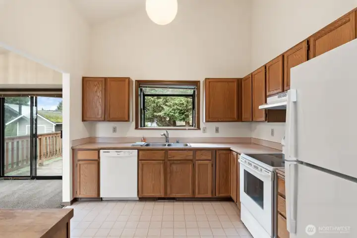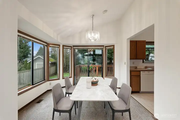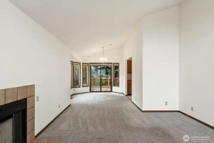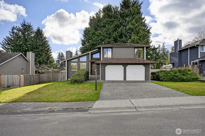 Great neighborhood and location! Solid home built in 1988. Huge lot and fully fenced with gate. Newer cedar deck, carpet and interior paint. Nice layout with open floor design & vaulted ceilings. Kitchen has plenty of cabinet space and garden window. Living area with wood fireplace opens to dining room with slider. Lower level has a half bath, laundry room and additional living space. With another slider to access back yard and patio. Upstairs are 3 bedrooms, including primary with its own full bath. Another full bath here too. 2 car garage with plenty of work space. Close to I-5, Millcreek town center and Martha Lake.