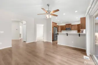 Gorgeous, like-new townhome in the desirable community of North Sunland in Sequim! This beautifully maintained 3-bedroom, 2-bath home offers a fantastic open layout with vaulted ceilings, a cozy fireplace, and efficient heat pump. Custom remote blinds, wood floors and Tray Ceilings! The stylish kitchen features quartz countertops, alder cabinets, and stainless-steel appliances—perfect for everyday living and entertaining. Spacious primary suite includes a large walk-in closet and a well-appointed bath with double sinks. Two-car garage with extra storage adds convenience. Enjoy a private, fenced back patio plus access to outstanding Sunland amenities including pool, clubhouse, RV parking, tennis courts, and golf. A rare opportunity for easy, low-maintenance living in a sought-after community.