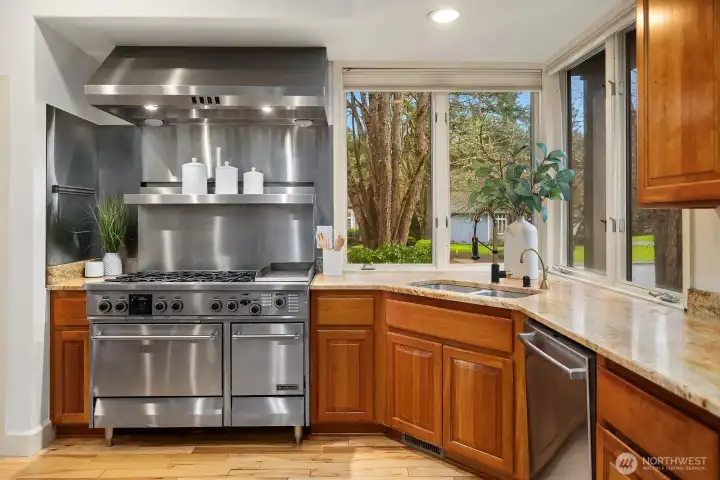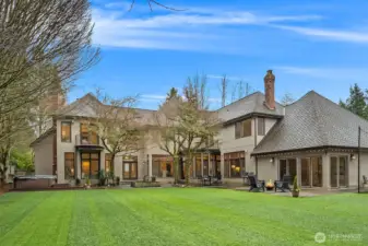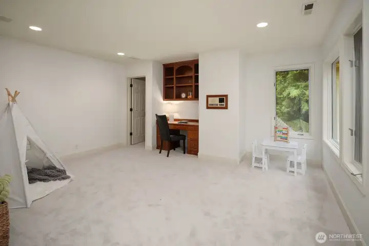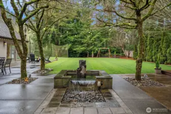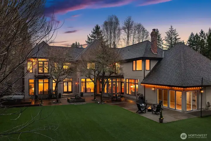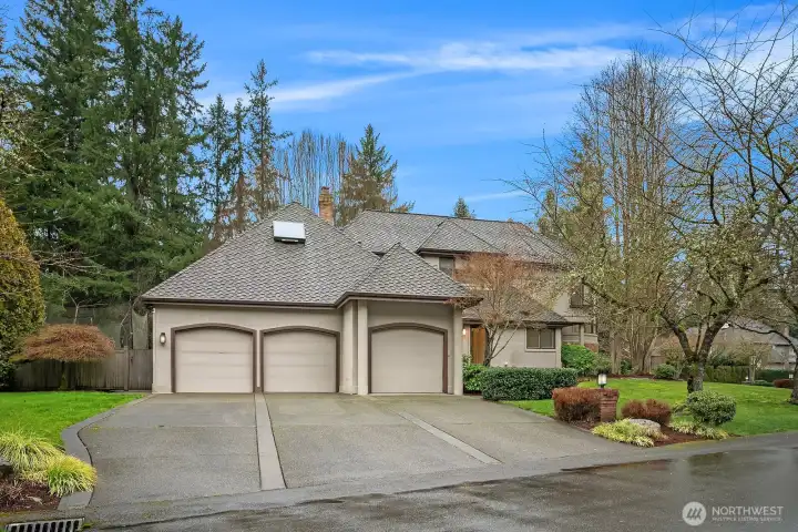 This expansive NW retreat sits on an oversized corner lot on a quiet cul-de-sac in Tibbetts Station. A welcoming entry offers a view of the fountain and the expansive private backyard. The spacious gourmet kitchen anchors the home with high-end appliances, breakfast nook and seamless flow into the family room with fireplace. Thoughtfully designed floorplan includes a dining room and formal living room overlooking the backyard. Main-level guest suite is ideal for visitors or multi-generational living. Upper level features a large primary suite with private balcony, positioned for privacy, along with additional bedrooms and two additional bathrooms. Two bonus rooms provide exceptional flexibility for media, fitness, work-from-home, or play. Laundry room offers abundant cabinets, counter space and a built-in craft desk. A separate, private studio space detached from the main living area adds versatility and is well suited for a home office, art studio, or home gym. The expansive, fully fenced turf yard offers generous space for outdoor play, sports and entertaining, while the patio, fountain, and hot tub create a private peaceful setting for year-round enjoyment. Brand new carpet, fresh interior paint, and a completed pre-inspection make this home move-in ready. Located within the award-winning Issaquah School District, this home delivers rare lot size, flexible living spaces, flat turfed yard, 3-car garage, and a highly desirable location. The best of plateau living.