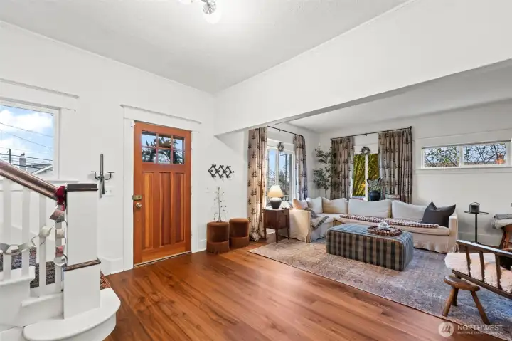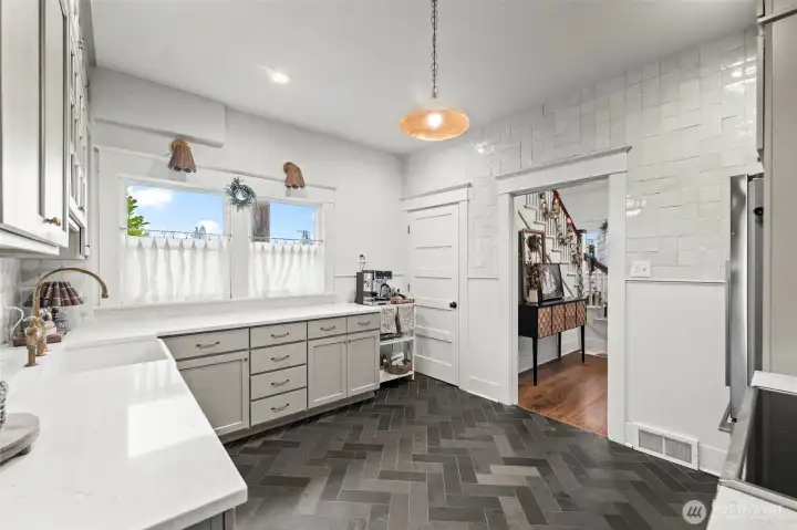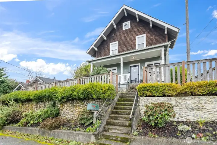 This house sits up on a corner lot in Tacoma’s North End. The elegant 1908 home blends timeless charm with thoughtful updates. High ceilings, lots of natural light, new flooring on the main, crown molding & a bay window frame Mt. Rainier views. The completely remodeled kitchen features custom cabinetry, quartz counters, new appliances, & vintage-inspired details that honor the home’s era. The spacious, fully fenced yard features mature fruit trees, garden space, a private patio, a backyard studio with power- great for a private office!! Two off-street parking spaces. Ideally located less than a mile to Proctor Farmers' Market, one block from Kandle Pool, & 10-minute drive to downtown and I-5. Many improvements-Brand new kitchen with Clé tile flooring and backsplash, and deVOL hardware, new wood floors on first floor, Shed updated with electricity, New stone retaining wall, all new PEX piping, French drains on sides, new paint, new light fixtures.