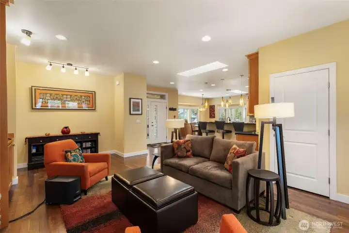 This home truly has it all—location, comfort, and exceptional upgrades! Beautifully situated on a corner lot in North Beach, just blocks from the beach, Fort Worden, and Cappy’s Trails. Designed for easy one-level living, this turnkey home offers 3 bedrms, 2 bathrms & 2-car garage, along w/ covered front & back porches, fully fenced backyard & professionally landscaped grounds w/ drip irrigation. Hardwood floors flow throughout the open-concept living spaces, perfect for entertaining. Skylights throughout bring in beautiful natural light. Kitchen features top of line SS appliances, Cambria countertops, propane range, center island, counter seating & walk-in pantry. Thoughtful built-in cabinetry enhances both primary bedroom & living room, which opens to the back porch through French doors w/ roll-away screens and features a dual-sided propane fireplace. The primary suite is located at the rear of the home and includes heated bathroom floors, dual sinks, a spacious roll-in no-lip shower w/ dual shower heads & seating & walk-in closet w/ Elfa shelving. A laundry room w/ add'l storage is conveniently located off the kitchen. The insulated and finished garage offers flexible use for parking, home gym, or workspace, complete w/ built-in shelving & utility sink. Energy-efficient features include LED lighting throughout, whole-house ventilation, heat pump w/ electric backup furnace, and a 50-year rated roof with gutter guards. A rare gem in an unbeatable location—come see it today!