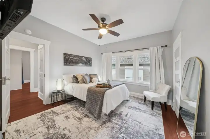 This beautifully updated and well-maintained classic craftsman is a real treasure! The welcoming front porch leads into a dramatic living and dining room with gorgeous millwork, a cozy fireplace, and an elegant ceiling. The main level offers three bedrooms and a full bath, while the kitchen boasts abundant cabinetry, stainless steel appliances, Corian counters, and access to the back porch. Downstairs, you’ll find a TV room, laundry area, a 3/4 bath, and two additional finished rooms with closets. Updates include a newer gas forced-air furnace, fresh interior paint, updated lighting, and vinyl plank flooring. The covered back porch is perfect for year-round enjoyment, and the fully fenced backyard features a utility shed. A heated single-car detached garage is conveniently accessed from the alley. This home is brimming with charm and character.