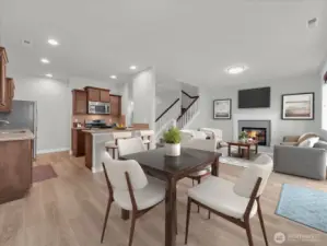 Pristine south facing craftsman in the secluded Serrano neighborhood, a short walk away from the Mill Creek Town Center. This 3 bedroom home features a spacious open concept living-dining-kitchen with cozy centerpiece fireplace; stainless gas cooking appliances, bullnose granite countertops and tile backsplash. Vaulted ceilings, open picket rail staircase, dedicated upstairs office loft, and large picture windows attract abundant southern exposure sunlight. Recently pre-inspected and refreshed with newer carpet, designer paint, and ensuite primary bath laminate flooring. Fully-fenced backyard patio space perfect for your spring BBQs. Very low HOA dues cover front yard landscaping. No rental cap restrictions. A must see!