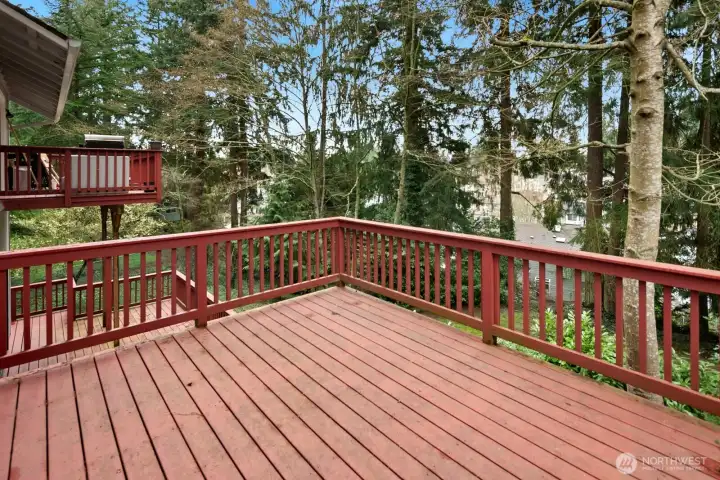 Tucked in a quiet cul-de-sac in sought-after View Ridge, this charming quad-level home offers flexible living with 3 bedrooms, 2.75 baths, plus a fully finished MIL/ADU—ideal for multi-generational living or rental income. Situated on large 0.38 acre lot. Features include an updated kitchen with newer appliances, a spacious primary suite with en-suite bath, and generous living areas with a wood-burning fireplace. Enjoy seamless indoor-outdoor living with the kitchen opening to a rear deck, plus two additional decks overlooking a mature, landscaped setting. Fully fenced, expansive backyard and a private, tranquil setting are complemented by a wired propane generator for added reliability—making this a rare opportunity. Welcome Home!