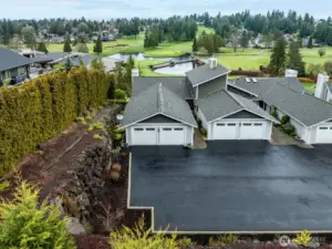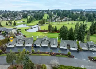 An incredibly rare, luxury condo offering within the private, gated Meridian Valley Country Club. This end-unit, main-floor living home captures sweeping golf course views & unforgettable sunrises while offering exceptional privacy, sophistication, & comfort. A serene, Zen-inspired entry opens to a light-filled, open floor plan w/ vaulted ceilings, walls of glass, and thoughtful updates throughout. Designed by an owner who truly loves to entertain, the kitchen shines with generous prep and storage space, newer Fisher & Paykel appliances, convection oven, quartz counters, farmhouse sink, touchless faucet, & smart cabinetry with pullouts. Primary suite on the main level enjoys peaceful views of the ever-changing landscape & a spacious walk-in closet. Lower level offers a second ensuite bedroom, recreation room with built-in surround sound, custom maple built-in workspace (easily converted to a bar), walk-out patio, and finished storage room—rarely found in condo living. Additional highlights include a whole-house vacuum system, newer furnace and A/C, new carpet and pad, Blink security, and a spotless finished two-car garage with epoxy floors, man door, and space for a golf cart. A gorgeous exterior refresh features low-maintenance composite decking and lush landscaping that shines in bloom. Optional social and golf memberships include dining, bar, pickleball, fitness center, and championship golf. A vibrant, walkable community offering refined, low-maintenance living!