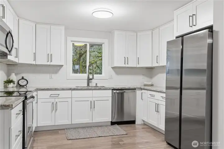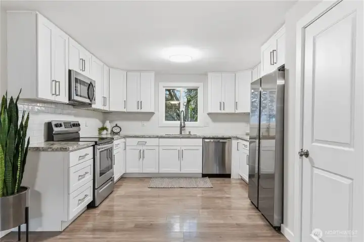 Charming rambler in a quiet neighborhood and a great location! Close to freeways, shopping, restaurants, schools, and other amenities. Beautifully updated home featuring white shaker kitchen, SS appliances, granite countertops, custom tile work, and so much more! Large corner lot gives extra parking. Laundry has additional storage room - or office perhaps? Classic and convenient layout with a smooth flow throughout the home. Roof, Electrical, Plumbing all fully updated and permitted in 2020! Completely move-in ready! This home will NOT dissappoint, come check it out today!