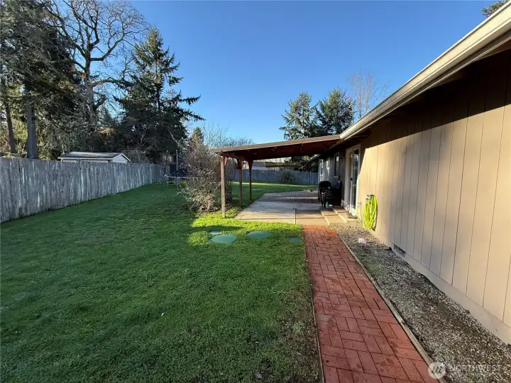 Come see this NEAT, CLEAN, AFFORDABLE Rambler in the desired Meadows community! Situated on a private .22 acre, fully fenced lot. This 3 BR, 1 BA home features what you want in a home. Family room boasts rich wood laminate flooring, skylights, large windows & wood burning FP insert. Kitchen offers abundant soft-close cabinetry, attractive tile counters & back splash, private covered extended patio, the perfect place for year round relaxing, entertaining or enjoying a beautiful sunset. Laundry room, Large backyard for you. Close to retail stores, I-5, SR510 & JBLM! Don't miss out on this opportunity!