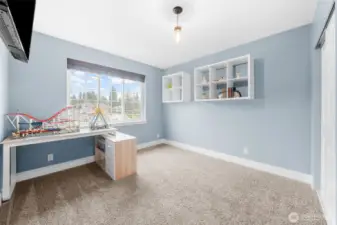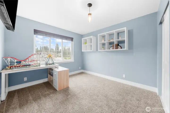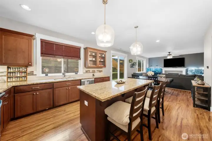 Welcome home to The Amethyst by Great NW Homes, a residence designed to impress from the moment you step inside. A dramatic two-story entry with a partial open handrail sets the tone, leading to a convenient front-facing office with a large window, carpet and ceiling fan is ideal for working from home as it is located away from the active areas. ½ bath on the main. The true great-room layout blends living and large kitchen spaces seamlessly, offering abundant cabinetry, generous countertop space, and an exceptional walk-in pantry. Gas fireplace in living room for those cozy evenings. Four oversized bedrooms include a spacious primary retreat featuring a luxurious five-piece ensuite and huge Walkin closet. Laundry room is located upstairs. Thoughtful finishes elevate every corner: granite slab counters, custom cabinetry, laminate flooring, and stainless-steel appliances. Outdoors, enjoy a fully landscaped yard with terraces great for gardening and fully fenced, a covered back porch great for BBQing, and so much more...crafted for comfort, style, and everyday living. Large two car garage. Terra Vista Community features playground and picnic area all on a quite dead-end cul-de-sac. Close to the mall, schools, restaurants, and highway.