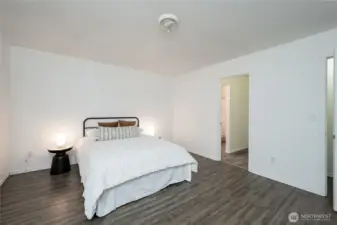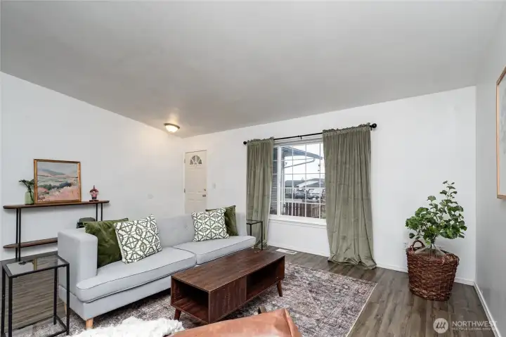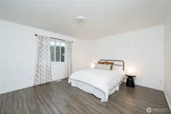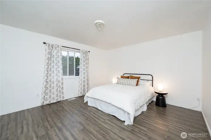 Mount Baker views from this 3 bedroom, 2 bath single story home with 1,380 square feet. Open floor plan with vaulted ceilings. Luxury vinyl plank and tile flooring throughout. Kitchen includes stainless steel appliances. Primary bedroom has a private bath and generous walk-in closet. Two additional bedrooms and a full second bath. Large, flat, fully fenced lot suitable for outdoor use and entertaining. Located close to schools, parks, and local amenities.