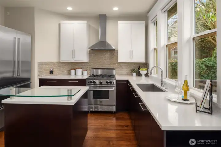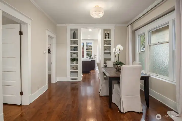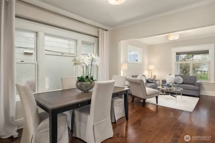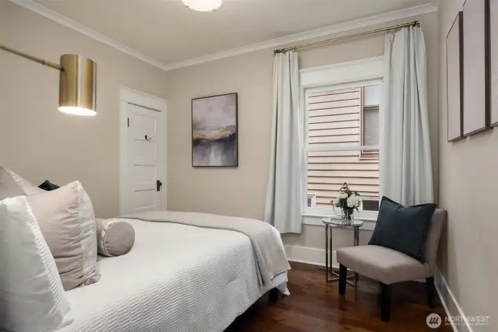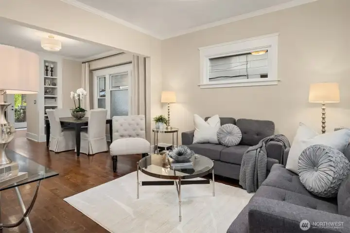 Charming Queen Anne Craftsman in an unbeatable location! Beautifully maintained 3 bed/1.75 bath home offering privacy & vibrant city living. Covered front porch & mature landscaping create inviting curb appeal, while a partially shaded yard & sun filled deck provide peaceful outdoor living with space for gardening. Light-filled main level features 9-foot ceilings, crown molding, fresh paint, abundant natural light, and classic built-ins that blend timeless appeal with functionality. Updated kitchen includes quartz countertops, gas range, center island for prep and gathering, and spacious pantry for convenient storage. Finished lower level offers flexible living options with cozy den featuring a gas fireplace, additional bedroom, and finished storage area not included in listed square footage. Separate egress/ingress enhances versatility for guests, multi-generational living, or potential rental use. A private backyard with garden beds & a peaceful water feature. Relax on the sunny deck with a chilled glass of wine and unwind. Ideally located near Trader Joe’s, Safeway, Macrina Bakery, Salt & Straw, How to Cook a Wolf, and numerous cafés, restaurants, and shops. Coe Elementary, Big Howe Park, Queen Anne Community Center, and the seasonal Farmers Market are just blocks away. Convenient access to bus lines, Microsoft Connector, and Amazon shuttles makes commuting simple. Enjoy the energy and convenience of metropolitan living while coming home to privacy and neighborhood charm.