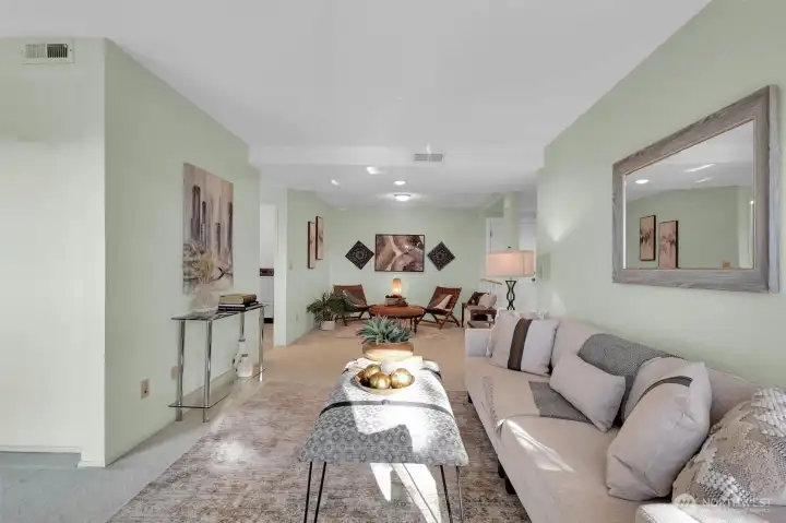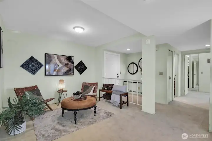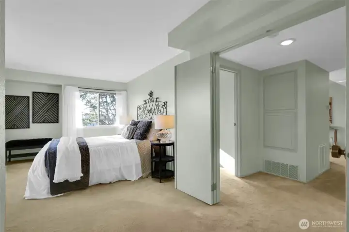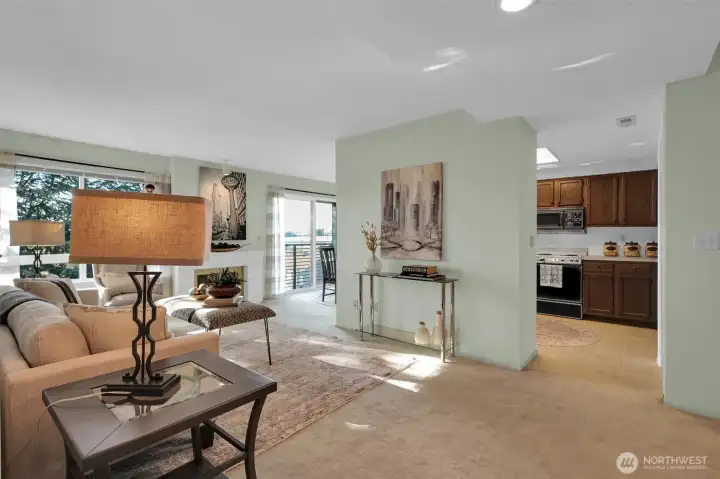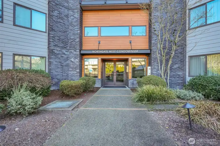 Top-floor 2-bedroom, 1.75-bath condo in highly regarded Northgate West. Bright, open living and dining areas create a welcoming environment for both everyday living and entertaining. Peaceful SE corner unit enjoys abundant natural light and enhanced privacy. The primary suite features an ensuite bathroom, while the second bedroom offers flexibility for guests or a home office. Interior highlights include a fireplace, Juliet balcony, in-unit washer and dryer, and ample storage space, including a private storage unit conveniently located on the same floor. A secure, oversized garage with automated entry adds everyday convenience. Community amenities include an outdoor pool, spa, and BBQ area. The complex provides plenty of guest parking and benefits from a fully remodeled exterior and roof completed in 2023. Conveniently located to all Northgate has to offer, and one block from light rail, shopping, dining, and major commuter routes. Steps to North Seattle College. No rental cap provides flexibility for investors and owner-occupants alike.