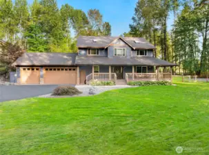 Tucked away down a long private road, this extraordinary property spans two tax parcels totaling over 10 acres, offering a rare blend of space and seclusion within an exclusive gated 8-home enclave. The 4-bedroom, 2.5-bath residence features two generous living areas, a chef’s kitchen with gas range, and three gas fireplaces—including one in the primary bedroom with an en suite bath. Modern conveniences include a 3-car garage and a whole-home automatic gas generator. A massive shop with a second-floor loft and mini-split wiring provides exceptional flexibility for work, storage, or hobbies. A peaceful retreat that balances comfort, privacy, and versatility, all with convenient access to Hwy 167, SR-18, I-5, and I-405.